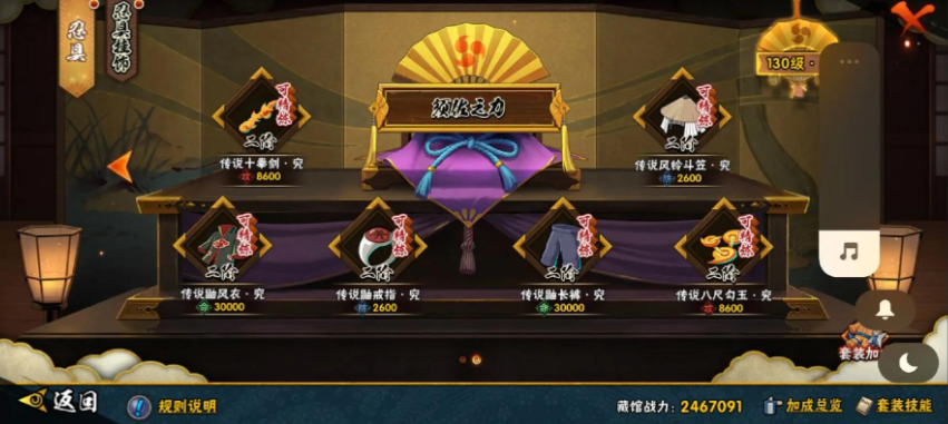 忍具系统是提升战力的核心玩法,对于新手来说,刚开始接触可能会有点摸不着头脑。忍具共有武器、护额、上衣、下装、配饰、道具这六个部位,每个部位都有传说、精良、优秀、普通这四种品质,其中传说的橙色品质是最好的。对于刚起步、手里没什么存货的玩家,最省心也最实用的方法就是,直接给你的六个格子都装上当前你能拿到的最好品质的忍具,先别管它是不是套装或者属性怎么样,核心目标就是用高战力先把基础打牢,等以后传说忍具攒得多了,再去研究更高级的搭配。