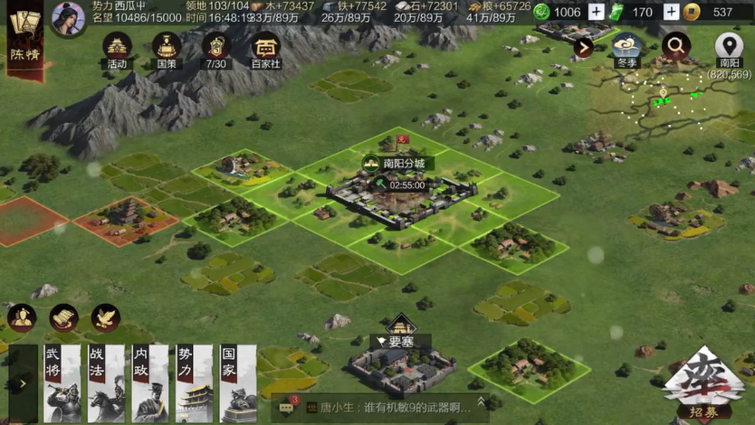 了解了迁城的目标后,我们来具体看看操作流程和必须满足的条件。你得确保你的主城处于一个空闲状态,也就是说,主城里不能有任何建筑正在升级,部队也不能处于出征或者征兵状态,而且你的主城绝对不能是被敌人沦陷的状态,在这些情况下都是无法进行迁城操作的。当你满足这些状态条件后,就可以打开游戏主界面的内政按钮,进入后再找到政务选项,在里面你就能看到迁城功能啦。点击之后,系统会列出你所有已经建好的分城,你只需要从中选择你想迁过去的目标分城就可以进行下一步了。