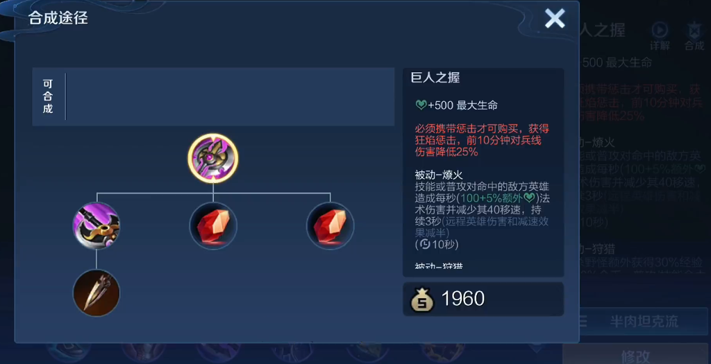 肉刀曜的核心优势在于被动星削机制与装备的协同效应。巨人之握提供的额外生命值能提升曜的技能回复效果,同时星削的伤害延迟结算机制配合大招归尘的清除效果,大幅提升生存能力。抵抗之靴减少控制时间,确保技能衔接流畅,而暗影战斧提供物理穿透和冷却缩减,是过渡中期的关键装备。需注意在合成肉刀后优先升级二级打野刀,利用其真实伤害被动加速清野效率。