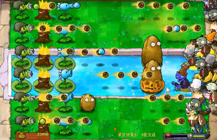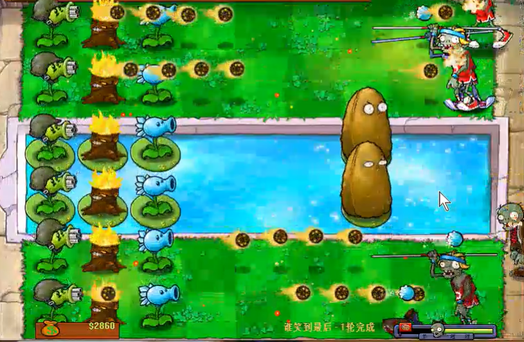 谁笑到最后与其他关卡最大的不同在于,开局会提供5000阳光作为初始资源,但禁止使用任何向日葵、阳光蘑菇等产阳光的植物。整个模式分为普通和困难两个难度,需要抵御5波或10波僵尸的连续进攻。这个模式最考验玩家的地方在于初始资源的合理分配和对僵尸进攻节奏的准确把握,因为每波之间虽然会补充250阳光,但总量仍然非常有限,任何决策失误都可能导致防线崩溃。