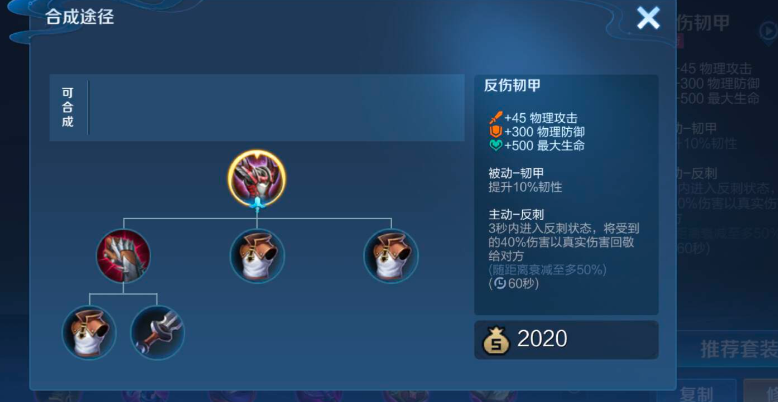 针对铠的持续消耗,程咬金需要强化自身的回复能力,不死鸟之眼在这时成为关键选择。这件装备不仅提供可观的法术防御,其被动效果还能大幅提升程咬金所有治疗效果,包括大招的回血效果,使得程咬金在低血量时能更快恢复状态,与铠进行持久周旋。为了进一步针对铠的物理输出特性,反伤刺甲也是核心装备之一,它不仅提供高额物理防御,其被动荆棘效果还能将部分受到的物理伤害反弹给攻击者,让铠在攻击程咬金时也要承受不小的代价。
