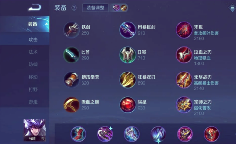 装备构建需要兼顾输出能力与生存容错,半肉输出装是当前最主流的选择思路。核心装备通常以冷静之靴和暗影战斧作为起手,这两件装备能提供可观的冷却缩减属性。冰痕之握是马超不可或缺的核心装备,其强击效果与移速加成能极大强化马超的爆发伤害。中后期需要补充爆裂之甲和不死鸟之眼这类防御装备,有效提升团战中的持续作战能力。最后补出名刀司命来应对致命伤害,在极限情况下创造反打机会。打野路线的装备选择则需要追击刀锋起手,其余核心输出装备保持不变,这样才能保证马超在各个时期的战斗力都不落下风。