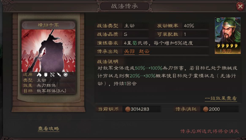 战法配置方面,张飞的核心输出战法推荐选择横扫千军或绝地反击。横扫千军能配合盛气凌敌形成控制链,对敌方造成震慑效果;绝地反击则适合拖回合的核弹体系,在持久战中积累伤害。辅助战法首选盛气凌敌,该战法不仅能限制敌方突击武将,还能与张飞的燕人咆哮联动,降低敌军统率实现破防。刚勇无前是S4赛季的优质选择,特别适合追求极限输出的玩家,但需注意该战法需要通过特定事件兑换获取。