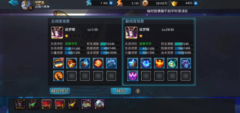 战宠融合是提升宠物技能数量和属性的核心玩法,通过主宠与副宠的技能叠加可以生成技能格更多的战宠。具体操作就是把多余的初生灵兽打满4个初级秘技,然后进行融合,有几率生成更多技能格的战宠。融合前需要确保主副宠物都打满技能,技能数量越多,融合后获得高技能格的概率就越大。不过融合结果存在随机性,通常两个4技能宠物融合出5技能已经算是不错的结果了。