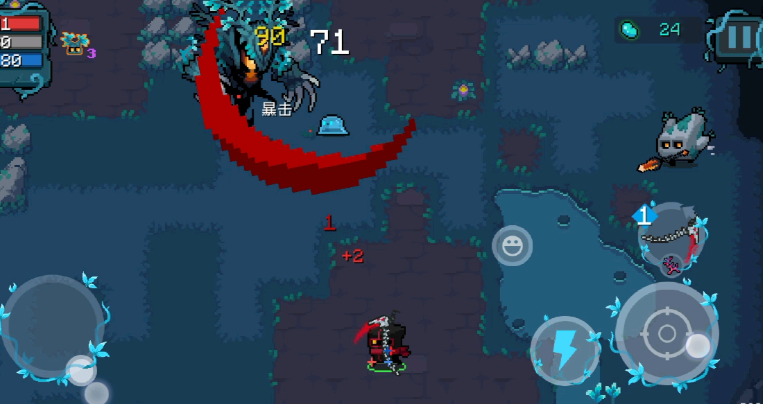 死神镰刀这把武器本身攻击力不错,暴击率也挺高,算是一把很有潜力的近战武器。死神镰刀的核心玩法离不开高效的防御。近战反弹子弹这个天赋几乎是必选的,它能让你在挥舞镰刀的时候直接把敌人的弹幕给弹回去,这样一来你既减少了走位的压力,又能增加输出,简直是一举两得。配合镰刀本身的攻击范围,清起小怪来会非常舒服。