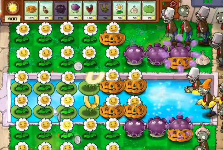 到了中后期,阵型基本稳定后,你的操作就从大规模建设转向了维护和微调。每波结束后给的那250阳光,就是给你查漏补缺用的。要时刻注意前排坚果的状态,及时替换被啃食严重的。水里的叶子如果被吃掉也要赶紧补上。如果看到小丑僵尸,得优先处理,因为它旋转起来会爆炸,容易破坏你的阵型。后期如果阳光有富余,可以考虑把一些普通攻击植物升级成更高级的,或者给关键植物套上南瓜头来提供额外保护,让你的防线更加稳固。