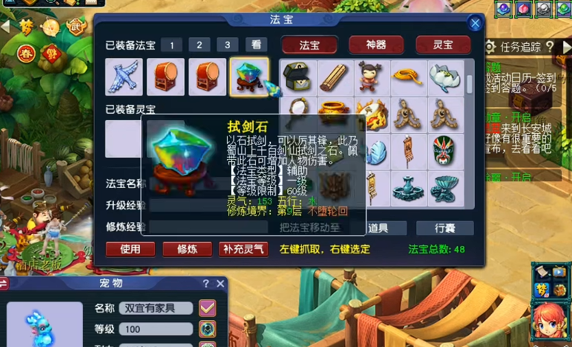 对于那些热爱物理输出的力天宫兄弟,你们的追求就一个字:伤!伤害是你们的第一要务。提升伤害的拭剑石是你们的首选法宝。追求极致输出可以带双拭剑石。如果觉得需要一点速度或者生存能力,也可以选择一拭剑石一风袋,或者一拭剑石一金甲仙衣的组合。确保至少带一个拭剑石来提升你的伤害面板,这样才能在任务和活动中打出漂亮的数据。