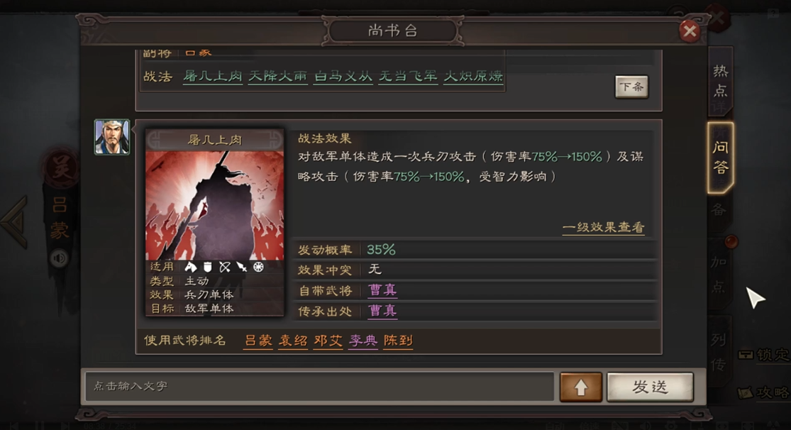 吕蒙在游戏中是个非常实用的辅助型武将,他的核心价值在于自带战法白衣渡江提供的控制和团队保护能力。开局第一回合就能让全体队友获得一次抵御效果,相当于免费挡一次伤害,在面对爆发型队伍时特别有用。战斗中,他还能通过兵刃和谋略伤害分别触发缴械和技穷效果,干扰对手的输出节奏。虽然控制概率不算特别高,但配合合适的战法和队友,他的干扰能力会变得非常稳定。