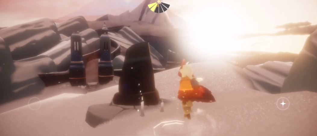 冥想台其实就在回忆先祖所在山坡的更高一层平台上。站在冰面往上看,悬崖边缘会有一道蓝色微光提示,那就是咱们要找的地方。飞上去后靠近石碑会出现白色光圈,点击坐下按钮开始冥想,随便输入一段文字就能完成任务。
