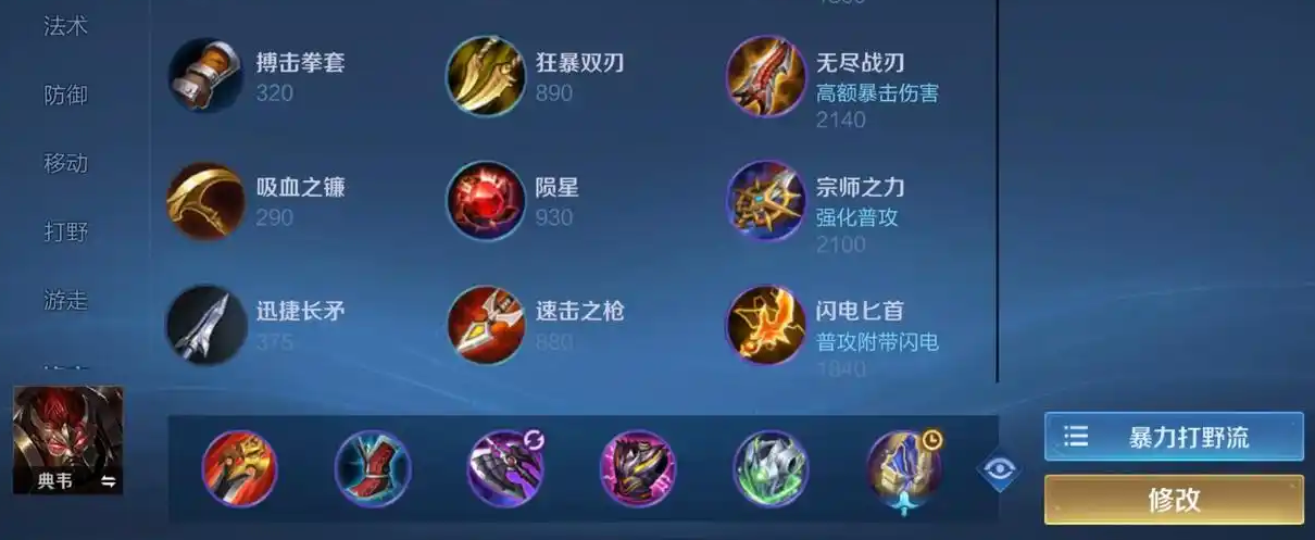 铭文搭配需兼顾攻防属性,10祸源提供暴击率强化普攻伤害,10隐匿增加移速和物理攻击,10鹰眼提升穿透效果。若侧重生存能力,可将部分铭文替换为调和或虚空,增强生命值与冷却缩减。打野典韦需利用黄刀加速发育,4级后通过GANK叠加被动;边路典韦则需谨慎对线,依赖反甲成型后的反击能力。无论哪种路线,中期反甲+黑切的双件套是强势期转折点,可主动参团扩大优势。
